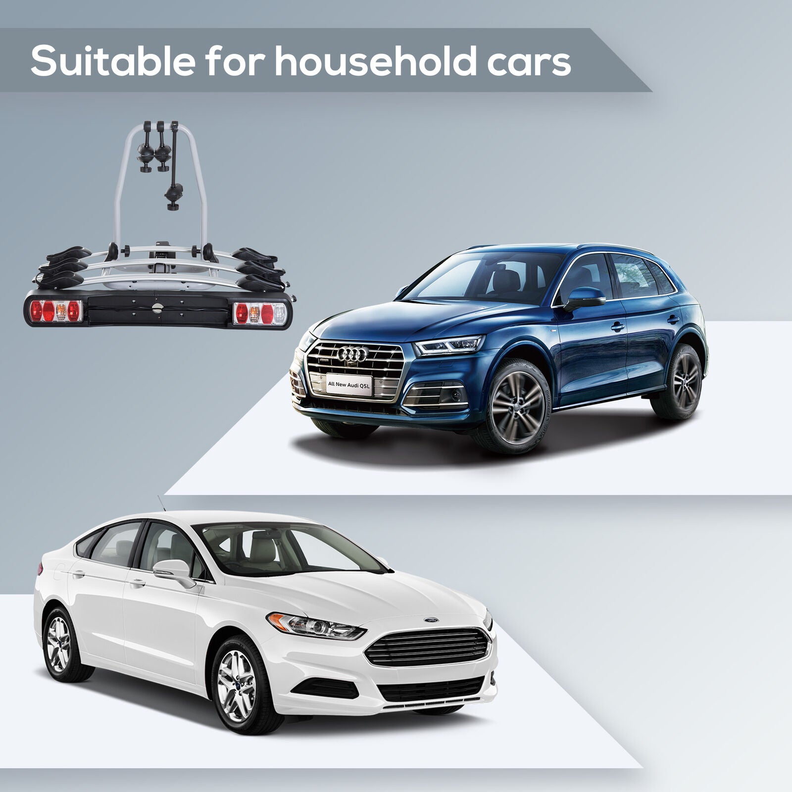 Have you been pursuing a bicycle carrier to attach to the rear of the car and the space on the roof of the car remains, and our product is here for you. This product can attaches to the back of cars, and able to connect to the power line so you can use the build-in brake and the lights. Unlike roof mounts which it is difficult to put bicycle in, our carrier is easy to install and easy to load and unload Bicycles. It is a fantastic equipment for riding fans.